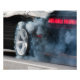 Carro preto a fazer queimaduras, rodinhas que provocam a fumaça dos pneus. Fotografia.