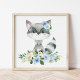 Adicione os retoques finais ao berçário do seu bebê ou ao quarto do seu filho com estas impressões de arte lindas! Design apresenta guaxinim, flores azuis de aquarela e verde.