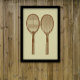 Ilustração Vintage tênis racquets em castanho macio sobre fundo de sábio leve.