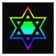 Este gradiente do arco-íris abaixo da estrela preta de David é criado de tons puros de vermelho (FF0000), amarelo (FFFF00), verde limão (00FF00), aqua ou ciano (00FFF), azul (0000FF) e magenta (FF00FF). Se quiser adicionar uma mensagem de texto personalizada, tente usar esses valores hexadecimais seis digitais e verifique os resultados.