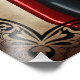 Estilo da rainha do design de corações com efeitos fortes. Apresenta uma ilustração de uma linda jovem, com cabelos longos e pretos, vestindo um espartilho vermelho.