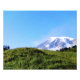Uma vista do Monte Rainier e ao redor de colinas verdes rolantes em um dia ensolarado de Primavera.