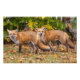 Um belo par de raposa com o macho nos dando uma piscar os olhos. As folhas do outono estão caindo.