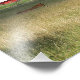 Imagem rural de dois cavalos relaxando em um campo. O celeiro vermelho brilhante e a árvore no primeiro plano enquadram a imagem de forma agradável.