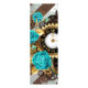 Relógio antigo e patenteado, adornado com joias, mãos de ouro e algarismos latinos com rosa de turquesa sobre fundo castanho e listrado. Estilo Steampunk.