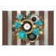Relógio antigo e patenteado, adornado com joias, mãos de ouro e algarismos latinos com rosa de turquesa sobre fundo castanho e listrado. Estilo Steampunk.