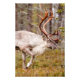 Touro de rena caminhando na floresta na Lapónia finlandesa. Grandes chifres. Fotografia tirada em outubro de 2016 em Saariselkä, Finlândia.