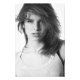 Retrato preto e branco de uma garota cujo cabelo cobria levemente do lado esquerdo e parece muito bonito.