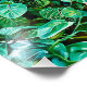 Um retrato marcante de uma mulher com uma expressão cativante, cercada por uma luxuosa e vibrante folhagem verde. A imagem mostra uma mistura de beleza e riqueza da natureza.