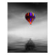 Impressão de Fotografia do Balão de Ar Quente a Preto e Branco Seletivo Minimalista
