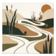 Este abstrato minimalista apresenta um rio sinuoso que flui através de uma paisagem serena desértica, acentuado por verduras vibrantes e um pôr do sol quente. Os tons de terra e as linhas simples criam uma peça calmante e eterno que irá adicionar um toque da natureza a qualquer espaço.