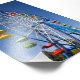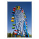 Fotografia de uma roda gigante alta com carros coloridos arco-íris sob um céu azul claro