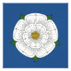 A rosa branca foi um dos vários dispositivos a serem exibidos em crachás e banners Yorkistas. Esta ilustração original de Richard H. Fay é baseada em vários rosas heráldicos de período medieval.