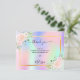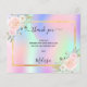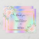 Um cartões de agradecimentos giro e elegante com foto. Um arco-íris, fundo holográfico em rosa, roxo, azul e verde-menta, decorado com flores. Personalize e adicione sua nota de agradecimento.