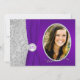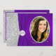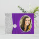 Esta fotografia floral de cinza roxa e prateada, maravilhosa, Foto de damasco Doce Dezesseis tem um convite IMPRESSO sobre fita e um medalhão de joias de cristal e cinza prateada. Ele tem uma área de modelo de foto na qual você pode carregar sua própria foto. As opções de texto e papel são totalmente personalizáveis. Se necessitar de itens correspondentes, envie um e-mail para niteowlstudio@gmail.com.