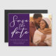 Este casamento roxo real Salve o ímã de fotos de Datas mostra uma bela tipografia branca em um sólido e profundo cartão violeta para uma cerimônia noturna no inverno. Escrito minimalista e uma cor ousada fazem com que seus cartões magnéticos se pop e se destacem da multidão.