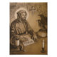 Reprodução de um desenho de carvão por A.R. Danziger. Rua, Benedict escrevendo a sua Regra na cela com o corvo que lhe trouxe pão e o cobra a avisá-lo do cálice envenenado.