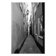 Imagem negra e branca de uma rua estreita antiga na cidade antiga de Estocolmo, Suecia.