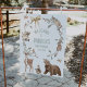 Sweet gender neutral woodland animals themed baby shower welcome sign featuring various woodland animals, butterflies, bow and wreath.