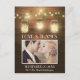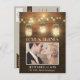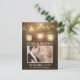 Foto Rustic Mason Jar Obrigado Cartões Cartões - personalize para uma foto sua. Design apresenta luzes e jarros de mason acesos pendurados em um galho com fundo de madeira de celeiro e fundo decorativo.
