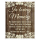 Sabemos que gostaria que eles estivessem com você no seu dia especial. No entanto, eles foram para o céu e ainda podem estar com os vossos corações. Este sinal de memória é uma adição de excelente à sua mesa de memória no dia especial. Com toques de renda em um fundo de madeira você tem aquela elegante, mas rústica, procura por você.