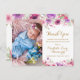Apresentando sua foto de bebê com delicadas flores de campo de aquarela acima e abaixo de sua mensagem de obrigado especial de anúncio de bebê personalizado. Projetado por Thisnotme©