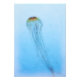 Uma pintura aquosa de uma água-viva, com um topo colorido, no oceano grande, aberto, azul. Copyright ©2017 Kimberly J Tilley.