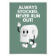 Sempre estocado, nunca acaba! Adicione algum humor (e um lembrete útil) ao seu banheiro com este poster de banheiro lúdico. Perfeito para os agregados familiares que valorizam o riso e os rolos de toucador completamente armazenados. Excelente para casas de banho, banheiros de hóspedes ou até mesmo loos de escritório!