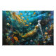 "Seraphina" - Linda Sereia Mística. Sonho Aquático: Neste cenário sereno submarino, uma bela sereia com um rabo de ouro altamente decorado está no leito do mar, seu cabelo fluindo derivando na corrente de um mar azul atordoante. As criaturas do mar circundante, incluindo um polvo humano inquisitivo e um peixe vibrante, trazem vida à cena. Os sutis tons multicoloridos e detalhes intrincados do estilo Pré-Raphaelite fazem disso um quadro cativante e revigorante.