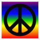 Símbolo de paz preto contra um fundo de gradação do arco-íris.