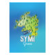 Simi Island Grécia poster de viagens com um belo avião de hélice azul voando para além.