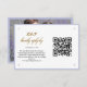 Design minimalista e simples, com quadro de lavanda e tipografia dourada, e também quadro de lavanda no verso para colocar sua foto. É tão romântico e floral para o dia mais especial da sua vida. Digite os detalhes e o código QR.