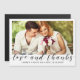 Obrigado os convidados de casamento em estilo com este moderno obrigado de fotos personalizado, seu cartão magnético. Este simples, mas elegante modelo de design mostra sua foto na frente bordada em branco com as palavras "Amor e Obrigados" em preto e seus nomes com data de casamento para personalizar. Parabéns pelo seu casamento e melhores votos! Desenhada pela artista Susan Coffey.