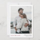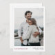 Este simples e moderno casamento de fotos, salve a data da modelo de cartão plano, como SAVE A DATA, e seus nomes e data abaixo de sua foto. Você pode optar por alterar a fonte, a pontuação ou a cor usada para vários elementos de texto deste design na frente e/ou no verso. Por exemplo, você pode optar por dar uma cor diferente para SALVAR A DATA ou outro texto, alterar esse texto para ler como SALVAR NOSSA DATA ou outra coisa, ou para excluir algo ou alterar um campo de texto inteiramente com uma mensagem diferente. Ou você pode mudar a redação de algum texto, como mudar "estão se casando" no verso para "são casandos", etc. A cor padrão do texto SAVE THE DATE abaixo da foto é um tom elegante de burgundy e os nomes e o texto da data são um preto ligeiramente suavizado por padrão. Escolhemos um tom de cinza para o texto no verso, mas talvez você prefira uma cor diferente. Em ambos os lados nós definimos o plano de fundo como transparente, de modo que a cor do papel sirva simplesmente como a cor base. Você pode escolher uma cor para o plano de fundo, se preferir. Use as ferramentas intuitivas de design, sua foto favorita e sua inspiração para fazer com que este casamento moderno e moderado salve a data de convidar modelo exclusivamente seu!