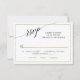 MODELO. Design simples, elegante e moderno que apresenta um texto elegante de escrita manual "rsvp". Uma bela e fina banda de ouro com pistas de cintilação esboça o design. Você pode excluir as opções de entrada se não for necessário simplesmente apagando o texto no campo modelo. Criada por uma artista e designer internacionalmente licenciada, Audrey Jeanne Roberts, copyright.
