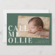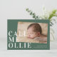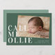 Cartão de Anúncio de Nascimento de Foto Simples e Bold Verde