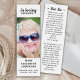 Simpatia Moderna Cartões de Marcador de Oração Funeral. Este simples cartão de marcador de poema memorial apresenta um design branco moderno. Frente "In Loving Memory" Personalize este cartão de oração do funeral memorial com a foto, o nome e as datas de seus entes queridos e o sentimento. Poema 'Miss Me', que pode ser personalizado, por favor, contacte se quiser uma design com um poema específico que não. Este cartão de oração será um guardião precioso, para serviços funerários, favores funerários e celebração de presentes vitalícios. COPYRIGHT © 2020 Judy Burrows, Black Dog Art - Todos Os Direitos Reservados. Foto Simples Poema Memorial Boletim de Oração Funeral