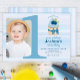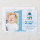 Um doce cupcake de mirtilo e um convite de aniversário de fotos de aquarela para comemorar esta ocasião muito especial, seu garotinho está virando um!