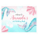 Sereia com aquarela de Aniversário convite de aniversário de Boas-vindas com tema "Sereia Sob o Mar" com sereia, com cor d'água pintada de corais coloridos, algas e escalas de sereia em rosa, roxo e turquesa. Este convite de festas aniversário de criança bonito é perfeito para uma comemoração do verão. Veja mais elementos para esta bela festa de aniversário na nossa coleção.