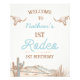 Vintage Western Cowboy First Rodeo primeiro aniversario Welcome Sign Boy é a vintage primeira placa de boas-vindas do rodeio Ocidental, com duas vacas mais longas, uma cena do deserto e um texto estilo corda. A idade é editável fazer este rodeio tematizado de boas-vindas de aniversário adequado para qualquer idade.