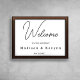 Casais Modernos Elegantes Nomes Casamento Sinal de Boas-vindas Amigos e família ao seu casamento com este moderno sinal de boas-vindas, com um roteiro elegante e design branco e preto minimalista