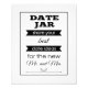 Este vintage, porém moderno, símbolo de data jar será o perfeito elogio à sua recepção de casamento ou festa. Este design apresenta uma combinação de fontes pretas e brancas, com 2 faixas pretas como sotaques, pedindo aos seus convidados para deixar uma nota no frasco com a sua ideia favorita de data para quando você é um casal casado.