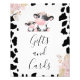 Sinal branco-cor-de-rosa Impressão de vaca Sinal Chá de fraldas de vaca Sinal branco Sinal de chá de fraldas de vaca-branca para uma menina que apresenta uma vaca e um vitelo preto-e-branco, um padrão de impressão de vaca preto-branco e alguns adoráveis arranjos de rosas florais cor-de-rosa. A placa de chá de fraldas desta vaca é ideal para um chá de fraldas temático de vaca.
