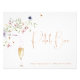 Placa de Chá de panela de pétalas de flor selvagem Sinais de Bar Delicar pétalas de flores silvestres e pétalas de chá de panela com tema prosecco Sinais de bar com disposição de flor selvagem, algumas pétalas e vidro de champanhe.
