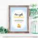 Peça aos seus hóspedes que decorem algumas fraldas para mantê-lo sorrindo durante as inevitáveis mudanças da fralda noturna. Este belo cartaz apresenta um quadro branco com fundo de bolinhas azul, bolhas e um pato de borracha amarelo. Altere o(s) nome(s) dos pais para se adequar à sua família. Itens correspondentes disponíveis na coleção 'Yellow Duck Bubble Bath'.