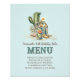 Crie uma festa surpresa para a aniversariante que ela nunca esquecerá com este Sinal de Menu do Teal Cactus Western Rodeo para a aniversária ocidental do país! Garota com cacto, botas, roda de vagão e um tema elegante e divertido para a 16ª, 21rua, 30, 40ª. Dama de aniversário de 50 ou qualquer ano, ideia de presente de aniversário ou presente de Namorados para seu namorada ou esposa! As cores tenas e bronzeadas com pop de flores de coral são perfeitas para um convite para botas de vaquinha ou chá de panela rústico também! Personalize o texto para ler o que quiser. Envie-nos uma mensagem para mais personalização!