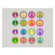 Sinal de Paz Hippie Popart, 70, 1970. Ilustração. Impressão de fotos, poster Os símbolos e sinais são preenchidos com cores. Não só alguém nascer nos anos setenta selvagens, entre 1970 e 1980, se lembrará da era "colorida" e dos sinais de paz. Esperando a paz mundial. Estes sinais enviam uma mensagem positiva.