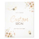 Com um tema delicioso de abelhas de mel e design de mel fofo, este sinal é perfeito para um chá de abelhas ou mamães. Quer você esteja hospedando um chá de fraldas de abelha boho, acolhendo um pouco de mel, ou aproveitando um chá de fraldas de abelha silvestre, este símbolo personalizado irá adicionar charme à sua decoração. É ideal para um chá de fraldas de abelhas, permitindo que você adicione seu próprio texto e o torne verdadeiramente único. Defina o tom para sua celebração com este símbolo personalizado adorável!