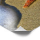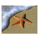 Fotografia de praia impressionante, um peixe-estrela laranja brilhante na borda das águas prestes a ser coberto por uma onda suave.
