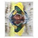 Este pequeno Mallard adora natação, mas odeia molhar o cabelo, por isso veste um estilete. Esta design foi desenhada com panos de panela e lápis coloridos.
